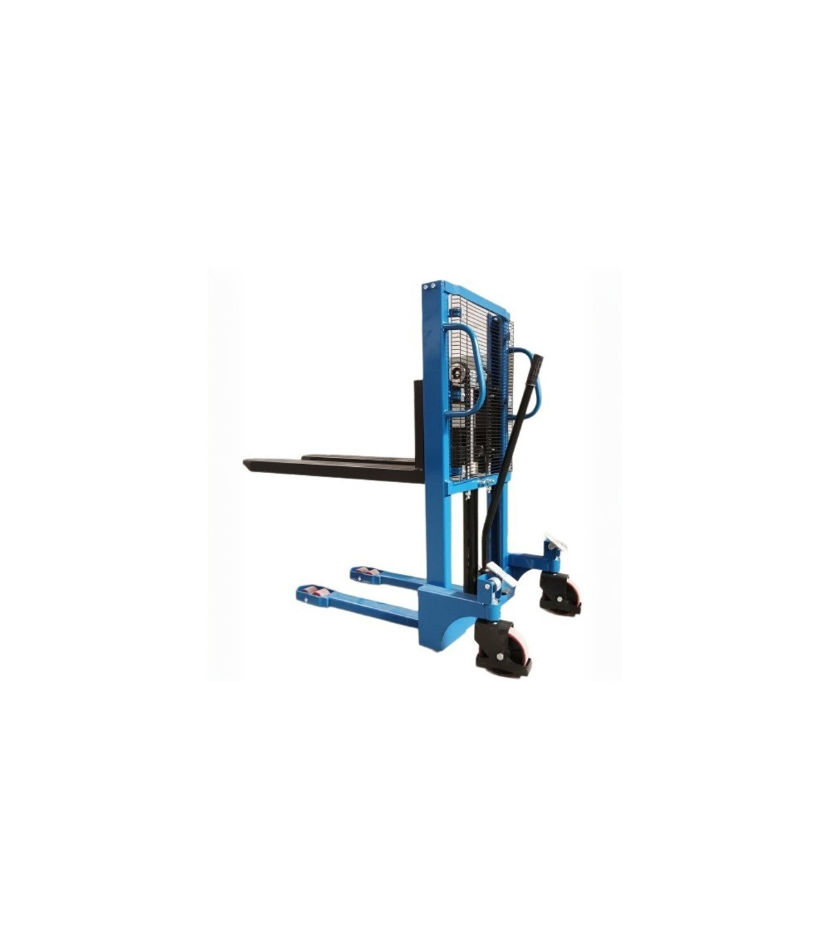 Apilador de elevación y traslación manual, la solución más económica para la elevación de cargas hasta 1.000 Kg. Descenso controlado. Apto para zonas con espacio pequeños / medianos. Rejilla de seguridad. Válvula de sobrecarga de seguridad. Freno en las ruedas. Marcado CE.