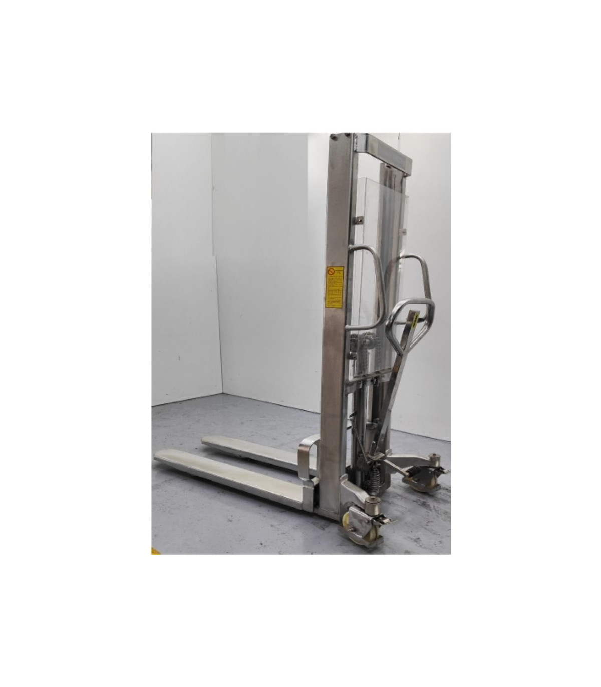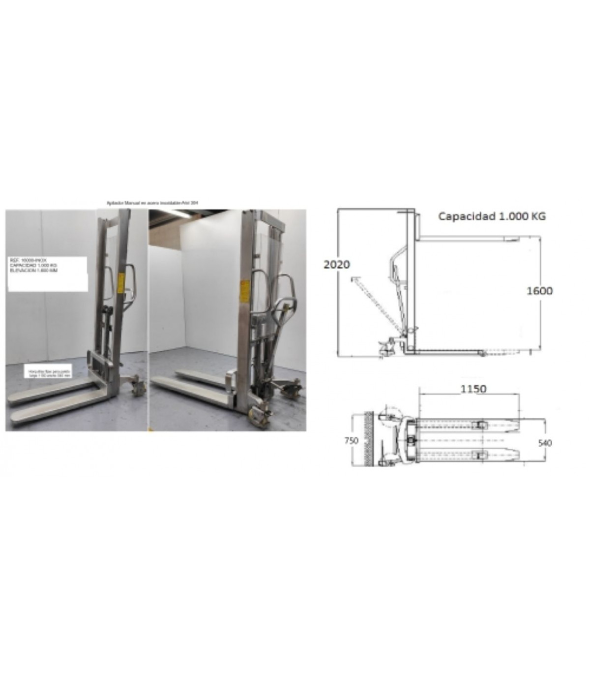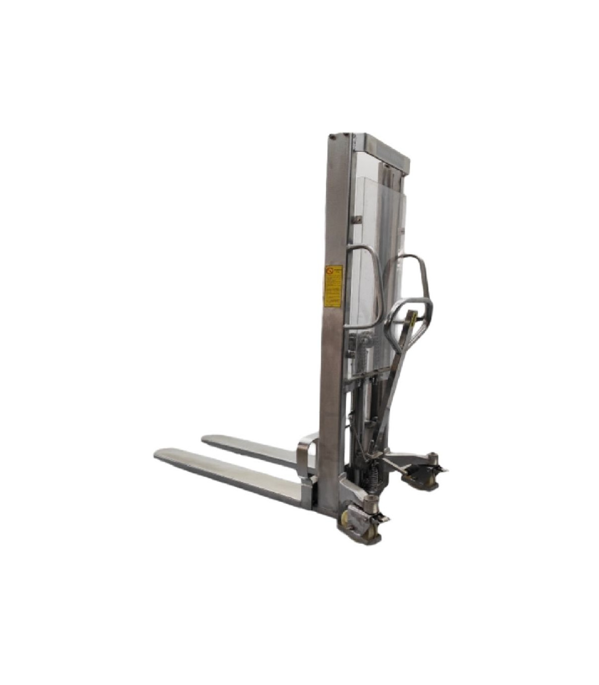 El apilador manual inoxidable es la opción más económica y eficiente para la elevación y traslado de cargas de hasta 1.000 kg. Equipado con uñas fijas de 1.150 x 540 mm, permite un manejo seguro y preciso.