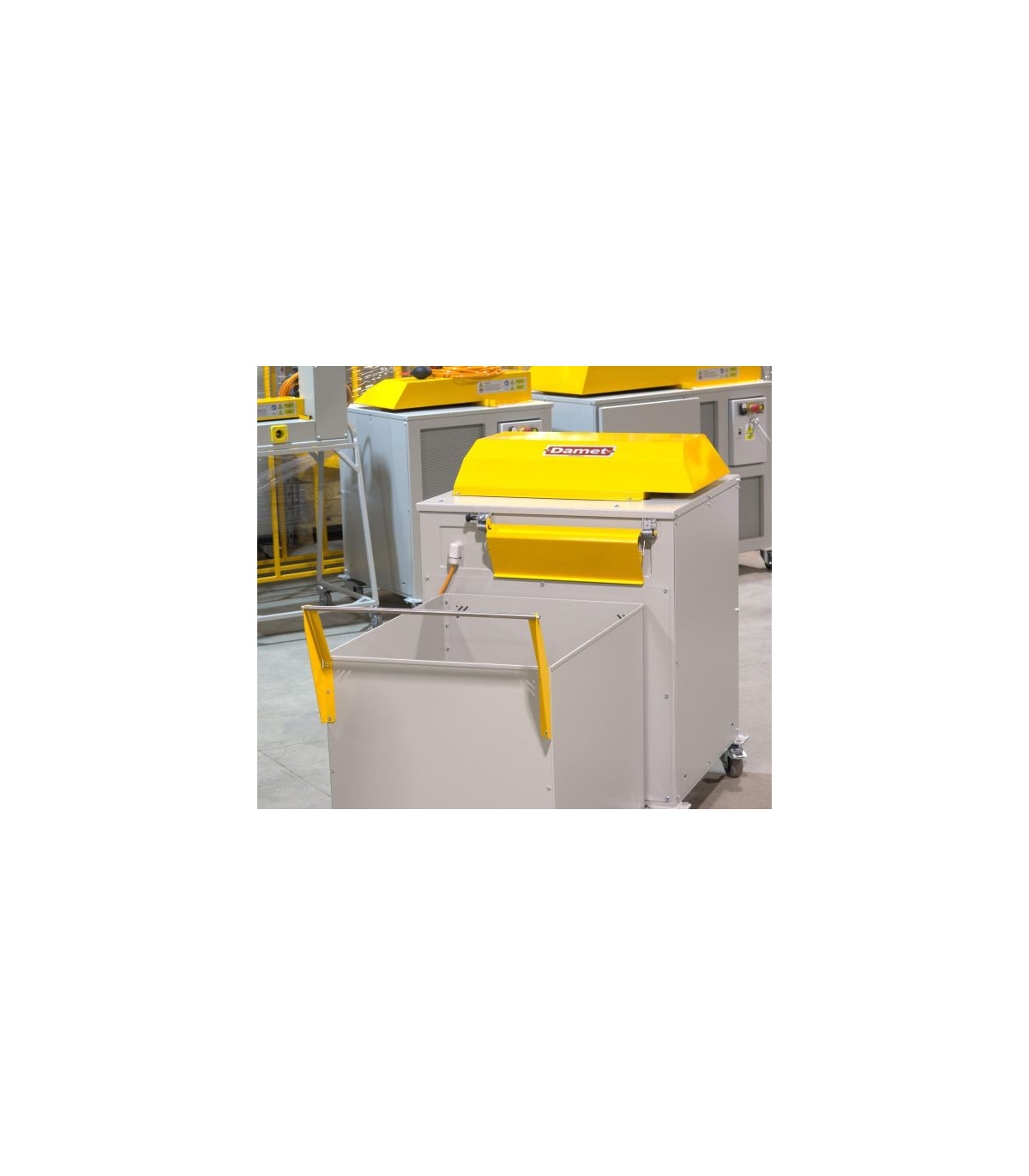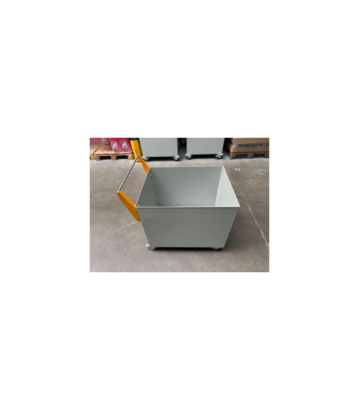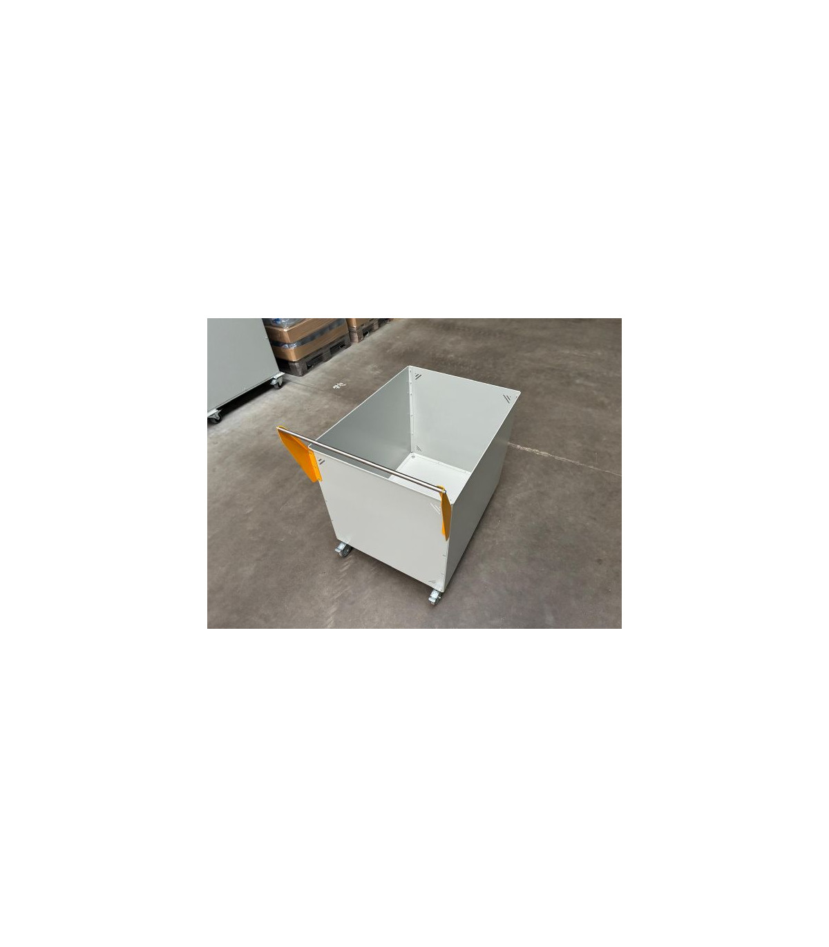 Trolley con ruedas para situar junto a las máquinas de reciclaje de cartón y recoger el embalaje mientras sale de la máquina.