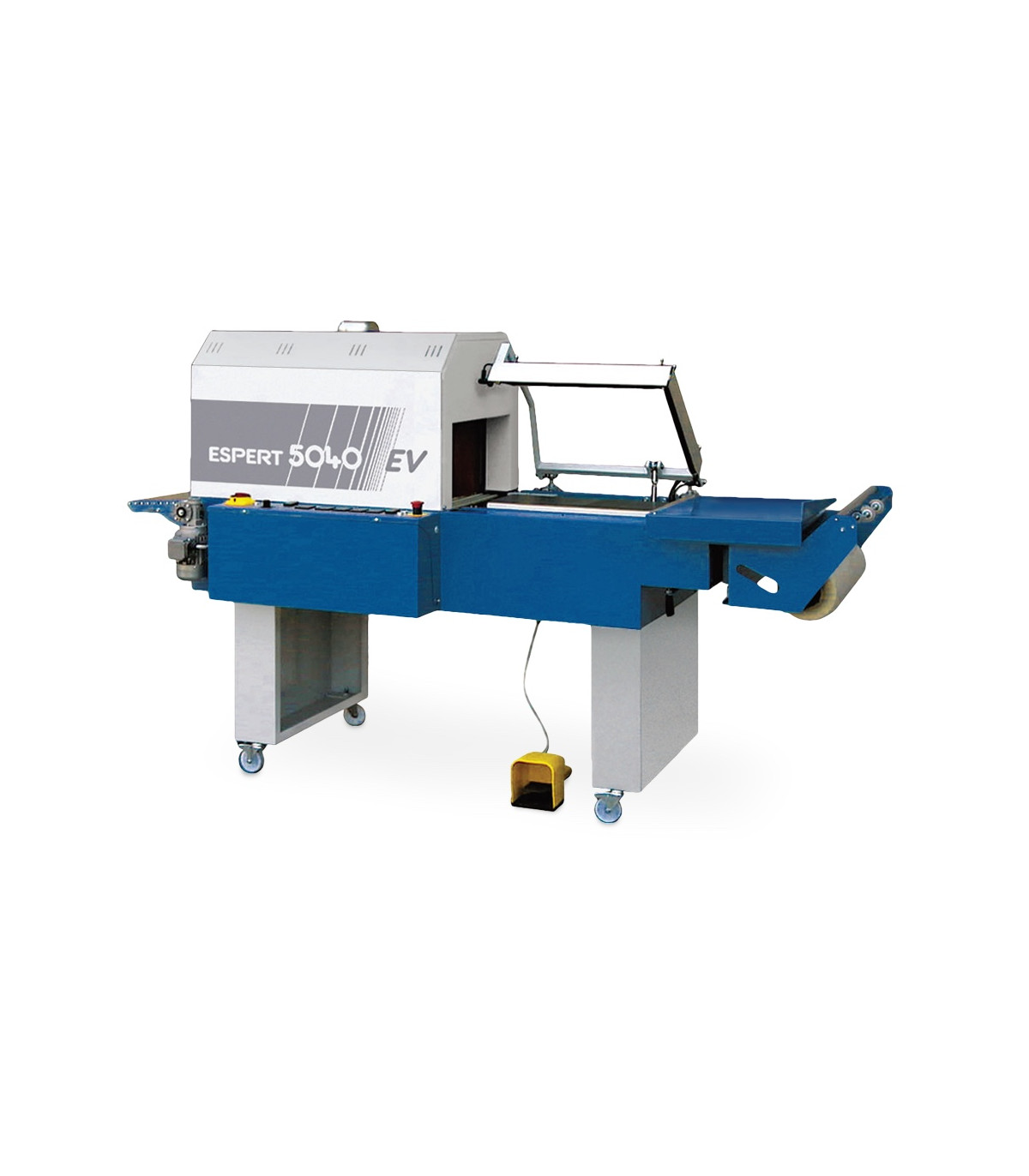 Destaca por su diseño innovador y alta calidad de fabricación, ofreciendo grandes prestaciones productivas. Funciona de manera neumática con control eléctrico de sus funciones, y tiene dimensiones reducidas. Cuenta con dos cintas independientes, una en la zona de soldadura y otra en el túnel de retracción, que aseguran altos rendimientos y bajos costes operativos. Su ciclo de funcionamiento es completamente automático, con bajada y reapertura de las barras de soldadura, así como tiempos de soldadura y adelantamiento de la cinta regulables. Entre las opciones disponibles se incluyen una cinta de rodillos y un recogedor de desperdicio. La máquina es compatible con PVC (BLUE FILM) y films poliolefínicos termosoldables y termoretráctiles (GREEN FILM, GOLDEN FILM). Además, está fabricada conforme a las normativas CEE.